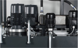 In this case the speed of the pump drive motor is changed. The nominal speed can be defined via command from the machine control or simply by a setting on the high-pressure unit. This method serves to adjust the discharge to the machining requirements. This control type comes to its limits in case of small speeds, as the performance of common asynchronous motors noticeably drops in this range.