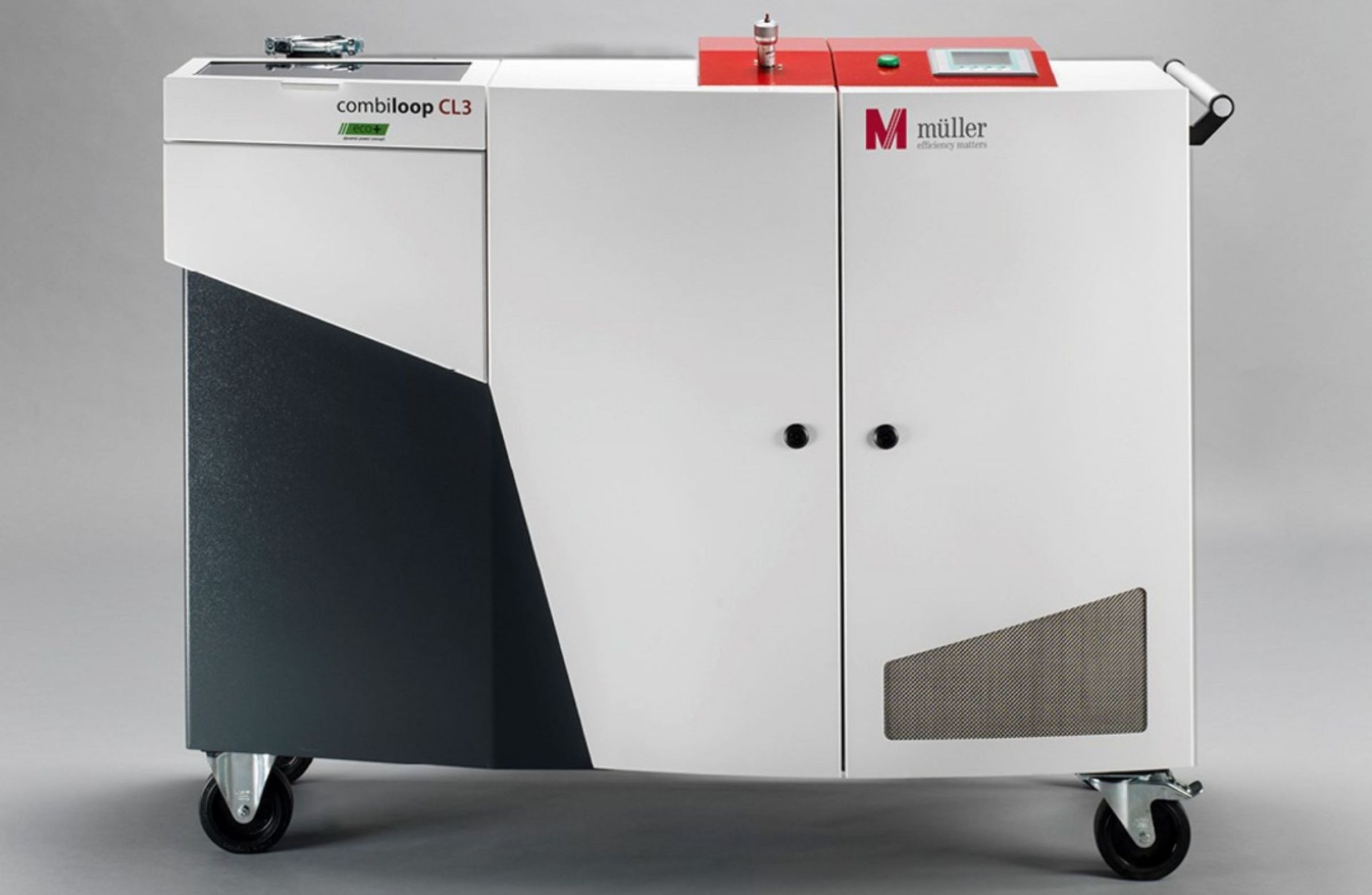 Particularly when processing machines are equipped ex works in the original equipment "with high pressure", it is often a matter of integrated 20-30 bar pumps. And in retrofitting, it is not uncommon to take a sledgehammer to crack a nut. For all processing machines that require a higher flushing performance - Müller offers the combiloop CL4 G-400 eco+ 70/60 and two special CL3 G eco+ models, true price-performance efficiency masters for high flushing performance, which can be designed to optimize performance and can be retrofitted easily, safely and quickly.